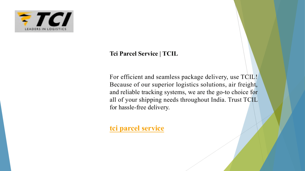 Tci Parcel Service | TCIL For efficient and seamless package delivery, use TCIL! Because of our superior logistics solutions, air freight, and reliable tracking systems, we are the go-to choice for all of your shipping needs throughout India. Trust TCIL for hassle-free delivery. tci parcel service About us To continue as a customer-focused, multi-technology transport leader in India and globally, dedicated to excellence in all areas and guided by values that benefit society, customers, vendors, employees, stakeholders, and the transport industry. Contact us TCIL India Thank you