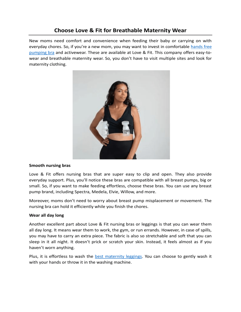 Choose Love & Fit for Breathable Maternity Wear New moms need comfort and convenience when feeding their baby or carrying on with everyday chores. So, if you’re a new mom, you may want to invest in comfortable hands free pumping bra and activewear. These are available at Love & Fit. This company offers easy-towear and breathable maternity wear. So, you don’t have to visit multiple sites and look for maternity clothing. Smooth nursing bras Love & Fit offers nursing bras that are super easy to clip and open. They also provide everyday support. Plus, you’ll notice these bras are compatible with all breast pumps, big or small. So, if you want to make feeding effortless, choose these bras. You can use any breast pump brand, including Spectra, Medela, Elvie, Willow, and more. Moreover, moms don’t need to worry about breast pump misplacement or movement. The nursing bra can hold it efficiently while you finish the chores. Wear all day long Another excellent part about Love & Fit nursing bras or leggings is that you can wear them all day long. It means wear them to work, the gym, or run errands. However, in case of spills, you may have to carry an extra piece. The fabric is also so stretchable and soft that you can sleep in it all night. It doesn’t prick or scratch your skin. Instead, it feels almost as if you haven’t worn anything. Plus, it is effortless to wash the best maternity leggings. You can choose to gently wash it with your hands or throw it in the washing machine. Ideal for curvy body types At Love & Fit, you’ll find diverse bras, leggings, and activewear in every possible size. You can access the size chart under every product and choose your preferred one. Buyers also mention that the nursing bras comfortably cover a bigger chest. Plus, they are both functional and comfortable throughout the day for heavy-chested women. Moreover, you don’t feel tight or pressured in heavy regions. The pajamas are also soft and breathable for everyday wear. You can carry the baby around or do household activities in this loungewear. It also pairs perfectly with this company’s Everyday luxe nursing & pumping bra. So, if you want only smooth and cottony soft compression workout leggings for your maternity phase, pick Love & Fit. New mothers are raving about this brand online. Give it a look right away and pick your essentials. To get more details, visit https://www.loveandfit.com/ Original Source: https://bit.ly/4oejxLb