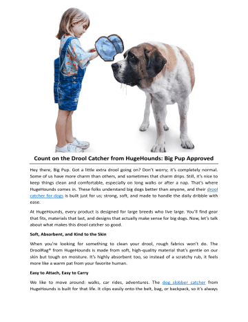 Count on the Drool Catcher from HugeHounds: Big Pup Approved Hey there, Big Pup. Got a little extra drool going on? Don’t worry; it’s completely normal. Some of us have more charm than others, and sometimes that charm drips. Still, it’s nice to keep things clean and comfortable, especially on long walks or after a nap. That’s where HugeHounds comes in. These folks understand big dogs better than anyone, and their drool catcher for dogs is built just for us; strong, soft, and made to handle the daily dribble with ease. At HugeHounds, every product is designed for large breeds who live large. You’ll find gear that fits, materials that last, and designs that actually make sense for big dogs. Now, let’s talk about what makes this drool catcher so good. Soft, Absorbent, and Kind to the Skin When you’re looking for something to clean your drool, rough fabrics won’t do. The DroolRag® from HugeHounds is made from soft, high-quality material that’s gentle on our skin but tough on moisture. It’s highly absorbent too, so instead of a scratchy rub, it feels more like a warm pat from your favorite human. Easy to Attach, Easy to Carry We like to move around: walks, car rides, adventures. The dog slobber catcher from HugeHounds is built for that life. It clips easily onto the belt, bag, or backpack, so it’s always close when needed. Whether you’re visiting friends, heading to the park, or lounging outdoors, cleanup is never a problem. Washes Up Like New Drool happens every day, but cleanup shouldn’t be a chore. HugeHounds made sure the DroolRag® can be tossed right into the washing machine. It comes out soft, fresh, and ready for the next round; no shrinking, no stiffness, no stress. Smart Pockets for Maximum Catching Power Here’s the clever part. The HugeHounds DroolRag® has special drool-catching pockets that trap even the longest, stickiest strings. It works perfectly for all kinds of jowls: short, long, or extra wrinkly. That means every big dog gets the same clean, confident finish. Because Big Dogs Deserve the Best So, Big Pup, if you’re ready to upgrade from old towels and awkward wipes, this is the way to go. The DroolRag® and other gear from HugeHounds are made for dogs who take up space proudly and don’t apologize for it. Visit HugeHounds to explore drool catchers, dog clothes for large dogs, and more essentials made for dogs who live large. To get more details, visit https://hugehounds.com/ Original Source: https://bit.ly/48hdvU1