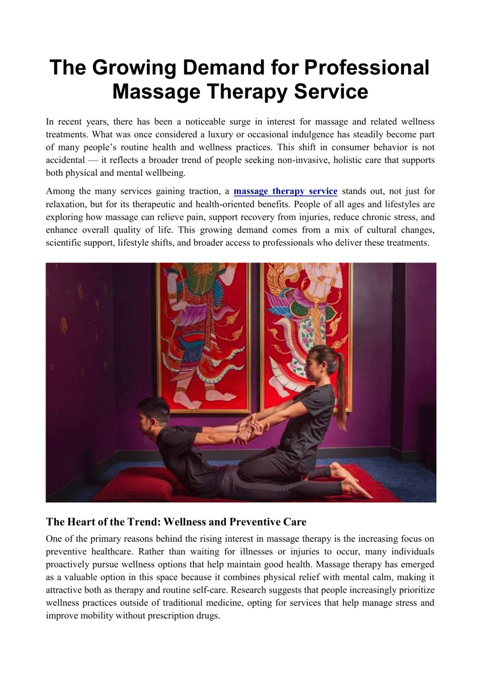 The Growing Demand for Professional Massage Therapy Service In recent years, there has been a noticeable surge in interest for massage and related wellness treatments. What was once considered a luxury or occasional indulgence has steadily become part of many people’s routine health and wellness practices. This shift in consumer behavior is not accidental — it reflects a broader trend of people seeking non-invasive, holistic care that supports both physical and mental wellbeing. Among the many services gaining traction, a massage therapy service stands out, not just for relaxation, but for its therapeutic and health-oriented benefits. People of all ages and lifestyles are exploring how massage can relieve pain, support recovery from injuries, reduce chronic stress, and enhance overall quality of life. This growing demand comes from a mix of cultural changes, scientific support, lifestyle shifts, and broader access to professionals who deliver these treatments. The Heart of the Trend: Wellness and Preventive Care One of the primary reasons behind the rising interest in massage therapy is the increasing focus on preventive healthcare. Rather than waiting for illnesses or injuries to occur, many individuals proactively pursue wellness options that help maintain good health. Massage therapy has emerged as a valuable option in this space because it combines physical relief with mental calm, making it attractive both as therapy and routine self-care. Research suggests that people increasingly prioritize wellness practices outside of traditional medicine, opting for services that help manage stress and improve mobility without prescription drugs. This trend is especially evident in urban populations, where hectic work schedules, sedentary lifestyles, and high stress levels are common. Daily life for many involves long hours sitting at desks, repetitive motions, and little time for physical exercise. These challenges often lead to muscle tension, pain, and reduced flexibility. Professional massage therapy directly addresses these issues by using hands-on techniques to increase circulation, relieve muscle tightness, and promote tissue flexibility. As a result, people are seeking these services not as occasional treats but as regular components of their health maintenance routines. More Than Relaxation: Medical and Therapeutic Applications Another important factor fueling demand is the recognition of massage’s potential medical benefits. While relaxation remains a key reason people seek these services, many also turn to massage therapy to help manage medical conditions such as chronic pain, arthritis, sports injuries, fibromyalgia, and tension headaches. According to research data, a substantial portion of consumers utilize massage not only for relaxation but for targeted therapeutic results that address specific health needs. For example, athletes increasingly integrate massage into their training schedules to improve recovery, reduce soreness, and enhance performance. Likewise, individuals with chronic musculoskeletal disorders find that regular sessions help manage discomfort and improve mobility. With information about the physical benefits of massage becoming more widely available, healthcare practitioners are also more likely to recommend professional massage as part of an integrative treatment plan — further legitimizing its role in modern health care. Mental Health and Stress Management Beyond physical benefits, mental and emotional wellbeing is driving interest in massage. Anxiety, stress, and burnout have become common challenges in today’s fast-paced world. Many people have discovered that massage offers emotional relief in addition to physical relaxation. A growing body of feedback and anecdotal evidence shows that consistent massage can reduce stress hormone levels and promote feelings of calm and balance — benefits people are actively seeking as part of overall mental health strategies. This expanded role of massage in mental wellness reflects a cultural shift where people are more willing to explore alternative ways to support emotional health, in addition to traditional therapies and self-help practices. Digital Access and Consumer Convenience In the past, locating a qualified massage therapist or clinic often required word-of-mouth recommendations or extensive searching. Today, online platforms have made it much easier to find professional therapists and understand the types of services they offer. Tools that allow users to filter very specific preferences — such as therapeutic focus, technique type, gender of therapist, or geographical proximity — have improved the consumer experience. One such platform that connects clients with licensed therapists and wellness professionals is MySpaList, which provides a searchable list of massage providers and spas so that individuals can explore options that best suit their needs. Though online booking — a feature often expected today — may still be developing on certain platforms, the ability to easily find and contact professionals has already broadened access to massage and wellness services. This increased convenience encourages people who may have been hesitant or confused about where to start to take that first step toward booking a session. Diversification of Services The world of massage is not monolithic. Far from it. There are many specialized techniques that cater to different needs and preferences. Traditional Swedish massage focuses on relaxation and general tension release, while deep tissue work targets deeper muscle layers for therapeutic purposes. Sports massage, prenatal massage, lymphatic drainage, medical massage, and reflexology are just some examples of how varied and specialized services have become. This diversification helps satisfy a broader audience. A client seeking relief from lower-back pain might choose a therapeutic modality, while someone looking to unwind after a stressful week may opt for